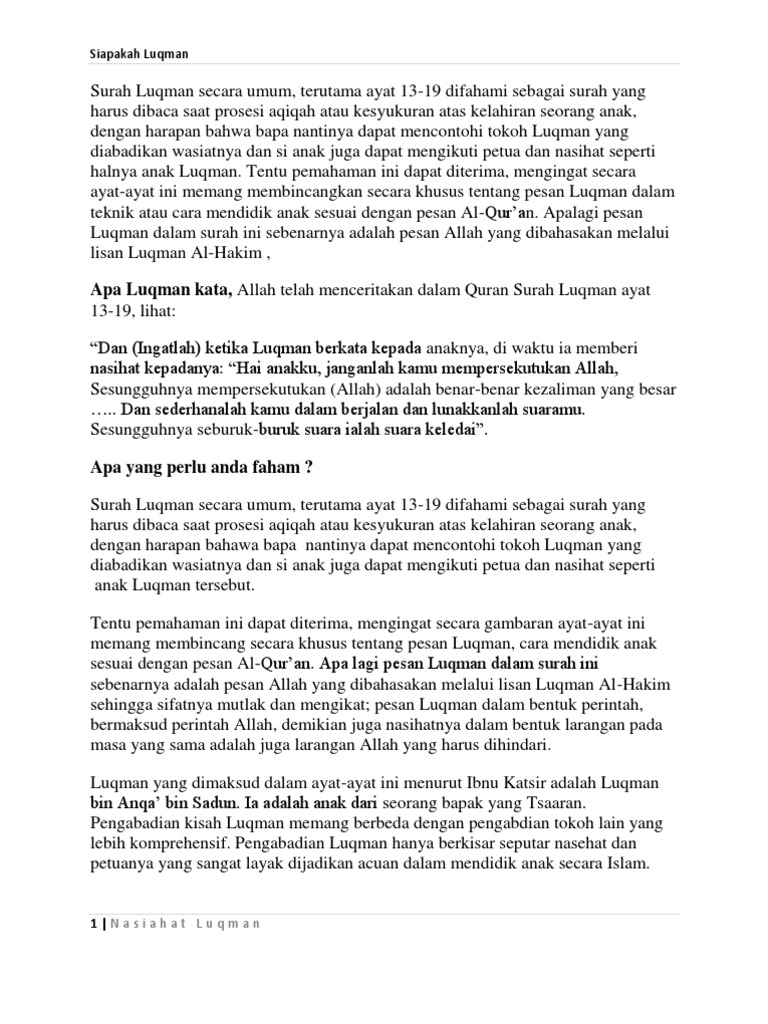 | Judul Surah: Surah Al Luqman Dan Artinya Belajar |